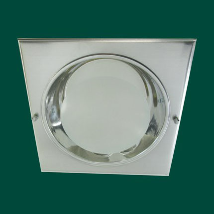 -Base em alumínio metalizado -Aro em alumínio com pintura eletrostática -Cores:branco, preto ou escovado -Acabamentos em alumínio cromado -Vidro plano temperado -Soquete E-27 em porcelana